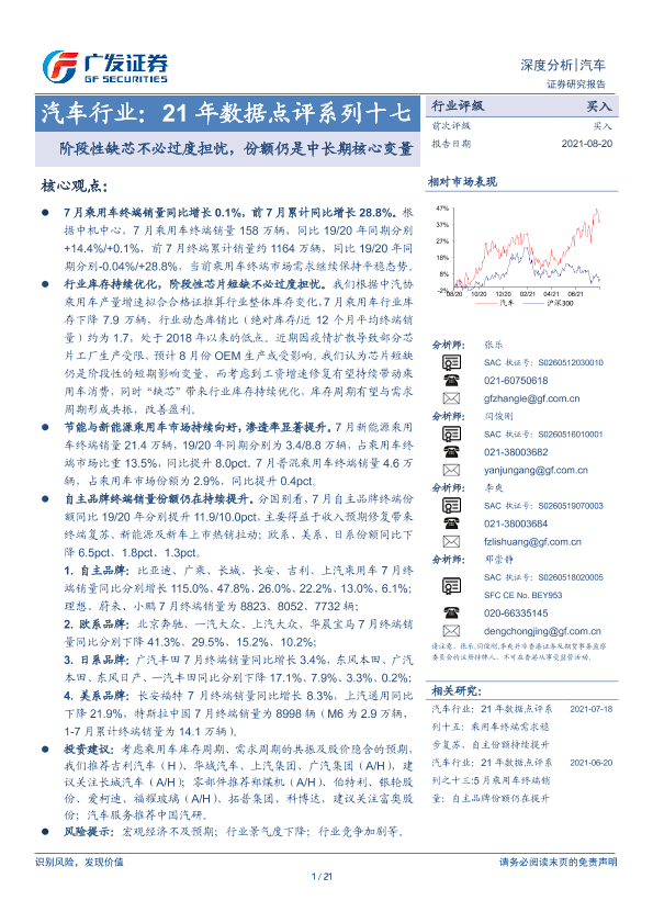 【广发证券】【20210820】21年数据点评系列十七-阶段性缺芯不必过度担忧,份额仍是中长期核心变量-21页