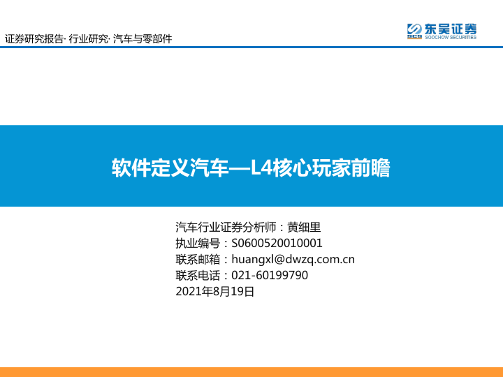 【东吴证券】【20210819】汽车与零部件行业研究:软件定义汽车—L4核心玩家前瞻-77页