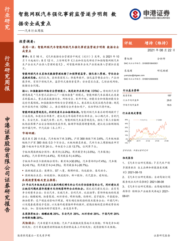 【申港证券】【20210822】20210822-申港证券-汽车行业周报:智能网联汽车强化事前监管逐步明朗 数据安全成重点-18页