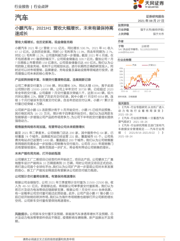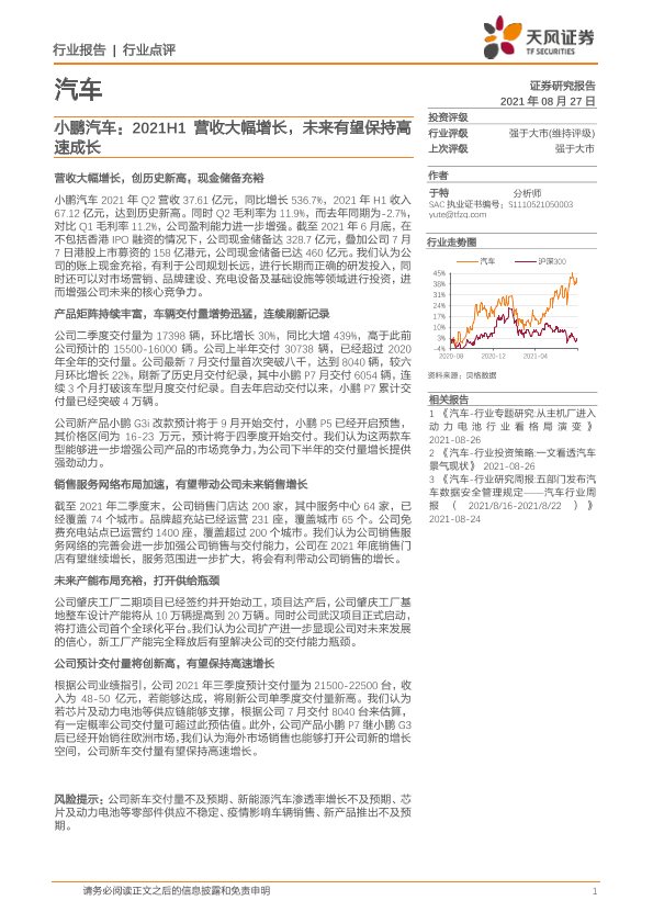【天风证券】【20210827】小鹏汽车:2021H1营收大幅增长,未来有望保持高速成长-3页