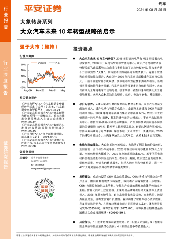 【平安证券】【20210825】大象转身系列-大众汽车未来10年转型战略的启示-20页