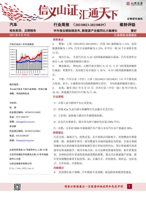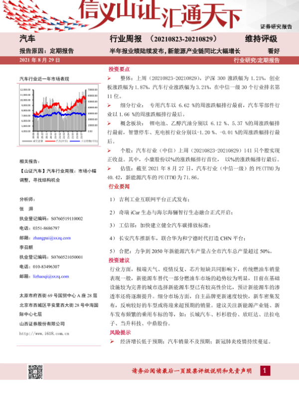 【山西证券】【20210829】20210829-山西证券-汽车行业周报:半年报业绩陆续发布,新能源产业链同比大幅增长-14页