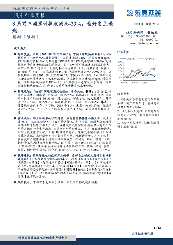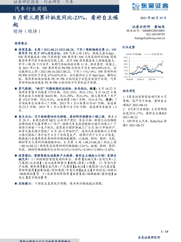 【东吴证券】【20210829】汽车行业周报:8月前三周累计批发同比-23%,看好自主崛起-14页