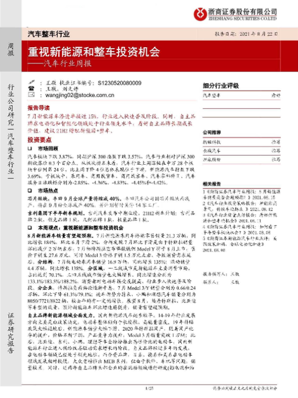 【浙商证券】【20210822】20210822-浙商证券-汽车行业周报:重视新能源和整车投资机会-25页