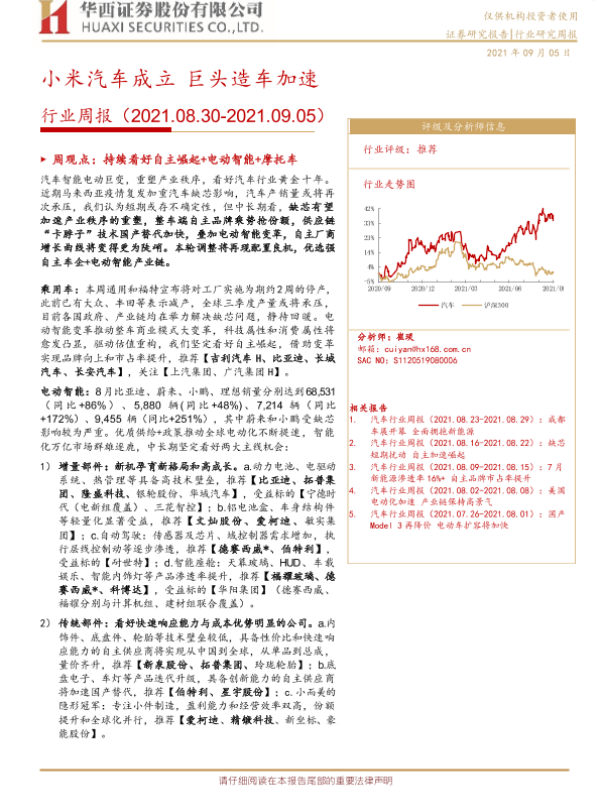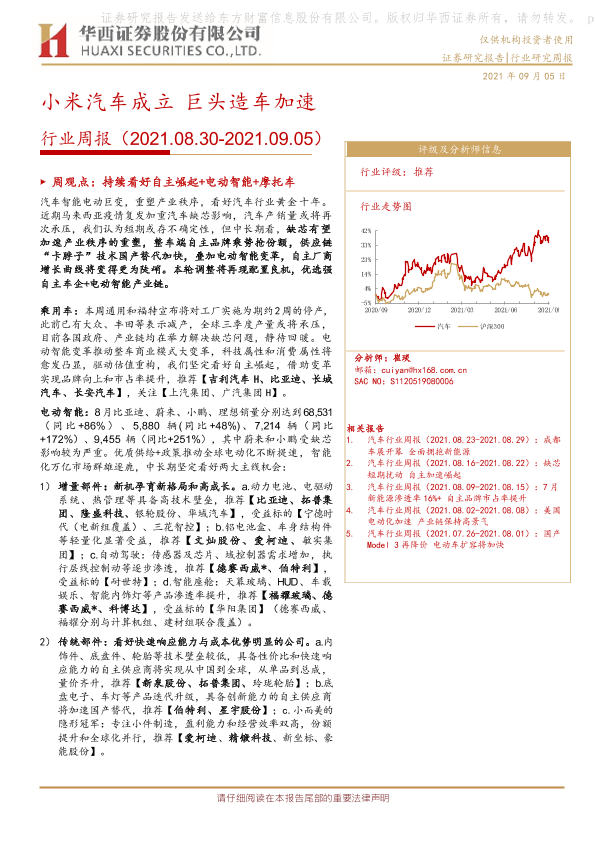 【华西证券】【20210905】20210905-华西证券-汽车行业周报:小米汽车成立 巨头造车加速-19页