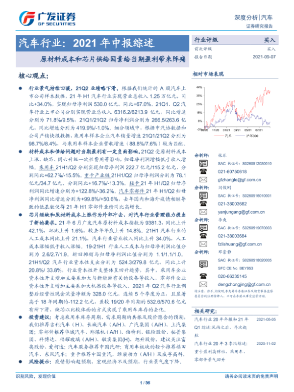 【广发证券】【20210907】汽车行业:2021年中报综述:原材料成本和芯片供给因素给当期盈利带来阵痛-36页