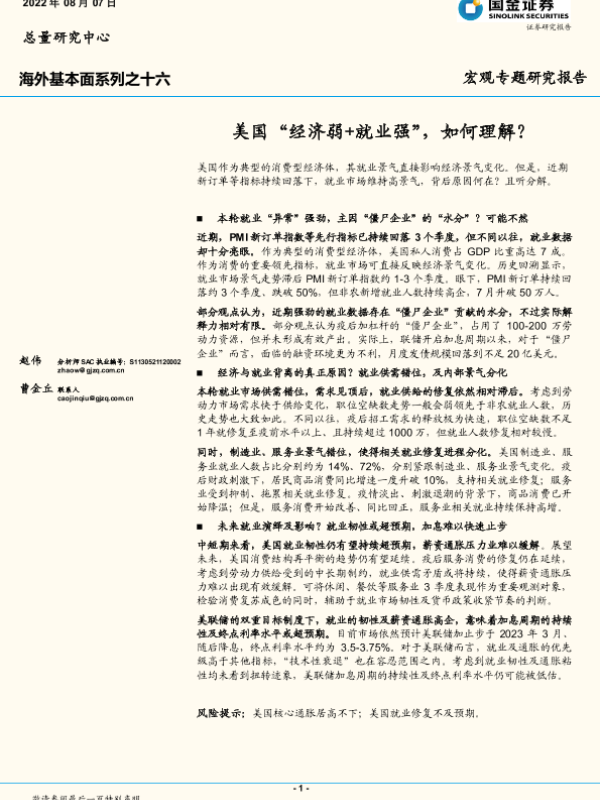 【国金证券】【20220807】海外基本面系列之十六:美国“经济弱+就业强”,如何理解?-18页