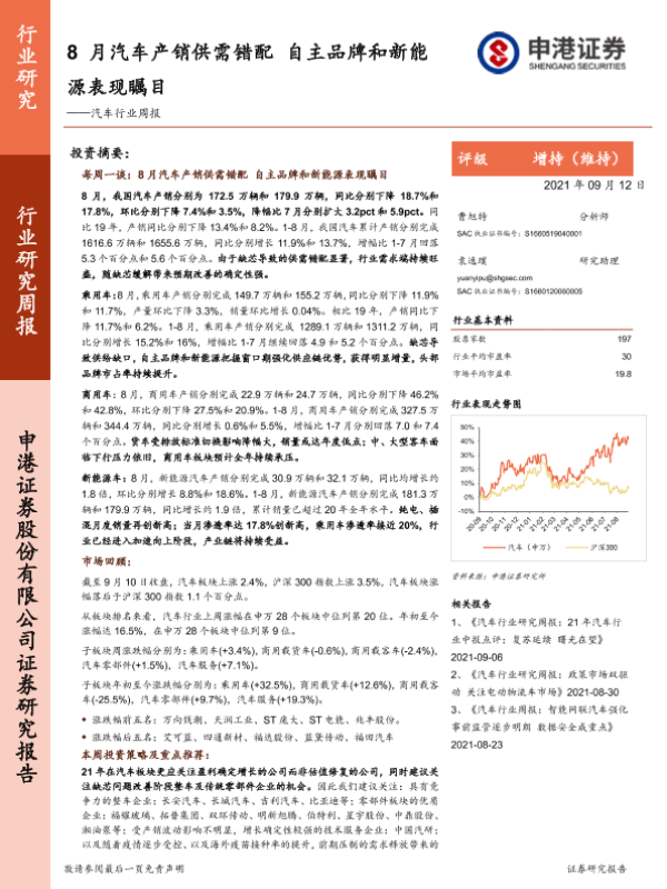 【申港证券】【20210912】20210912-申港证券-汽车行业周报:8月汽车产销供需错配 自主品牌和新能源表现瞩目-16页