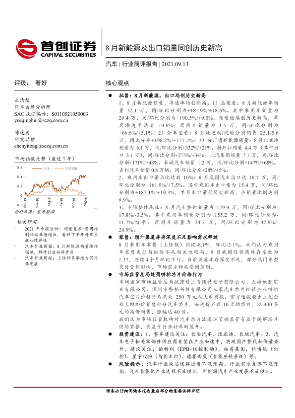 【首创证券】【20210913】20210913-首创证券-汽车行业简评报告:8月新能源及出口销量同创历史新高-10页
