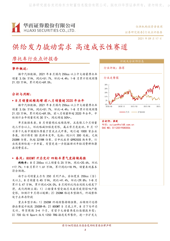 【华西证券】【20210917】摩托车行业点评报告:供给发力撬动需求 高速成长性赛道-5页