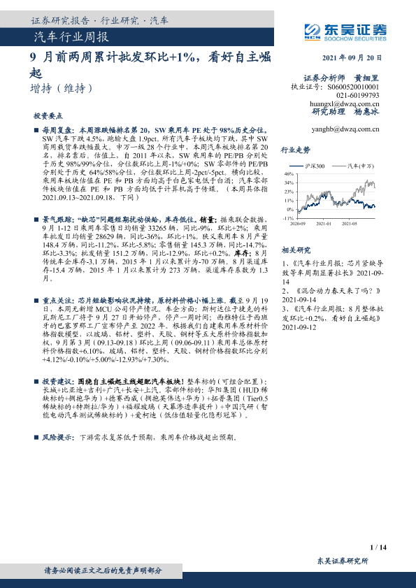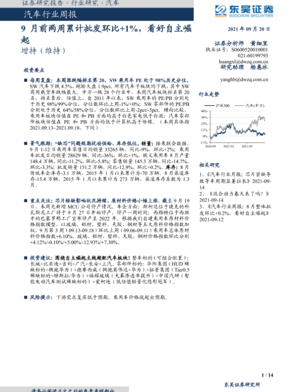 【东吴证券】【20210920】20210920-东吴证券-汽车行业周报:9月前两周累计批发环比+1%,看好自主崛起-14页