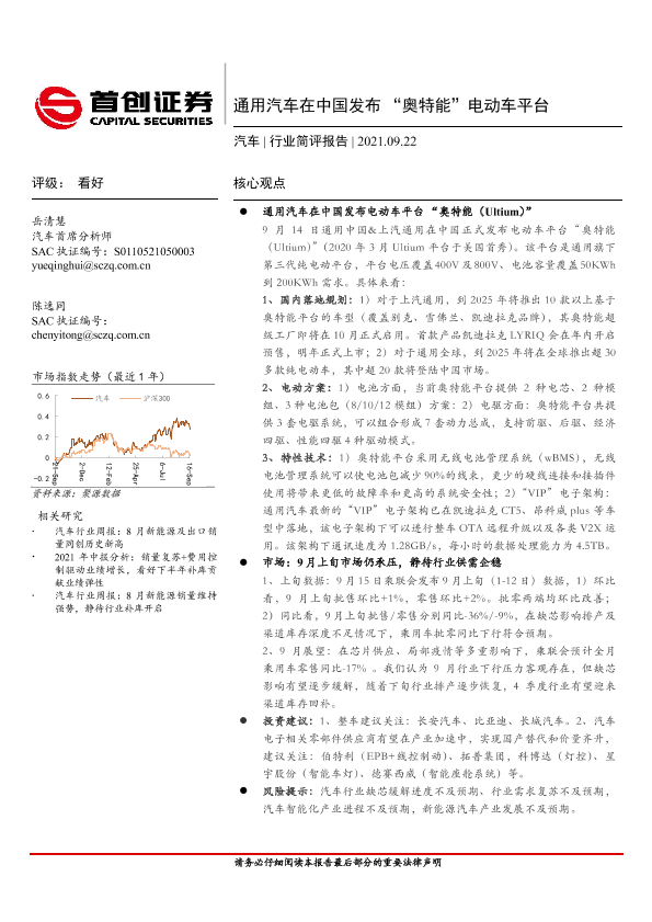 【首创证券】【20210922】通用汽车在中国发布“奥特能”电动车平台-10页