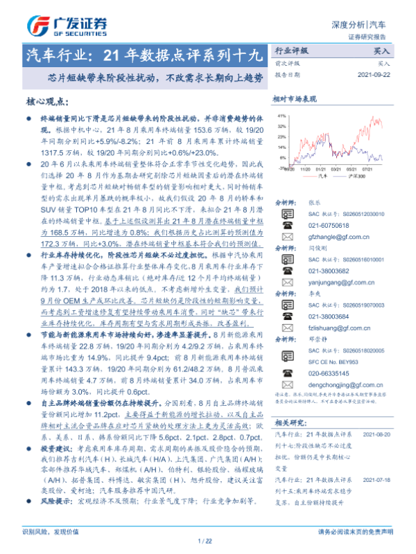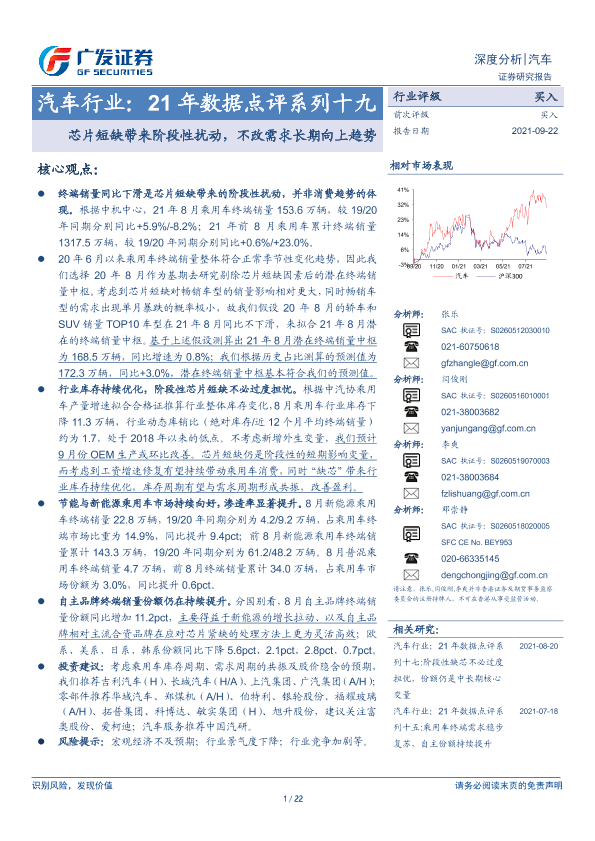 【广发证券】【20210922】汽车行业21年数据点评系列十九:芯片短缺带来阶段性扰动,不改需求长期向上趋势-22页