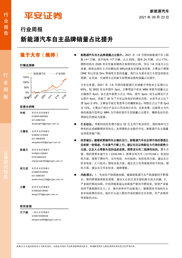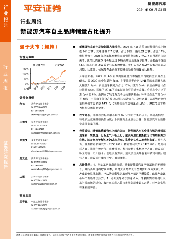 【平安证券】【20210923】新能源汽车行业周报:新能源汽车自主品牌销量占比提升-10页
