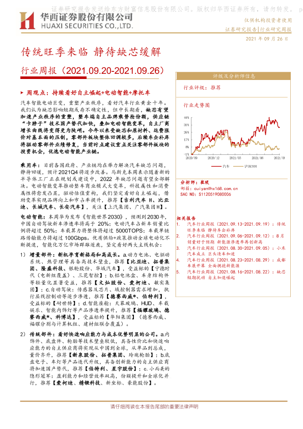 【华西证券】【20210926】20210926-华西证券-汽车行业周报:传统旺季来临 静待缺芯缓解-19页