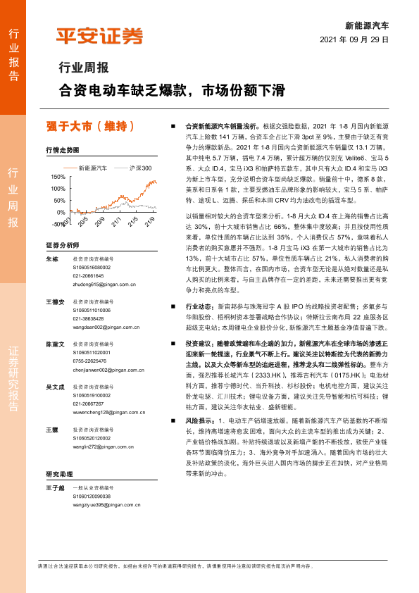 【平安证券】【20210929】新能源汽车行业周报:合资电动车缺乏爆款,市场份额下滑-10页