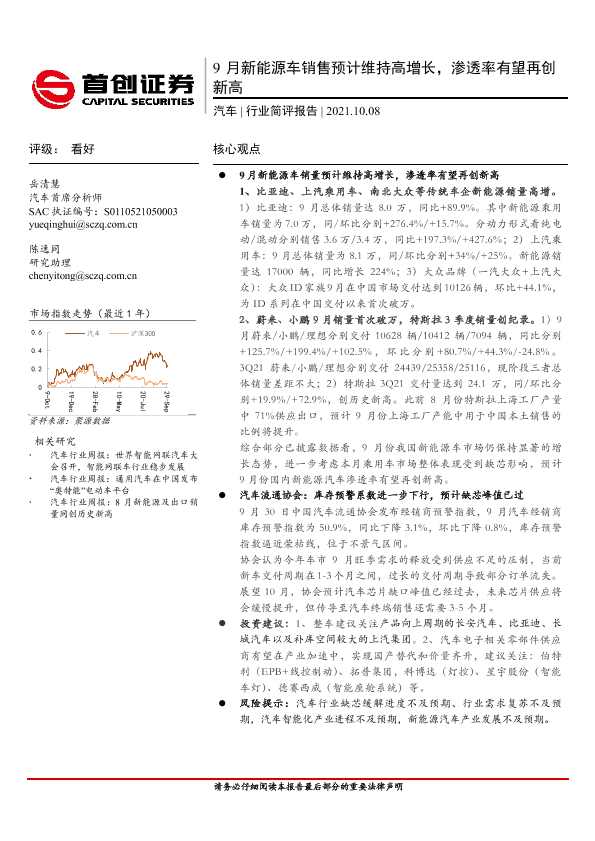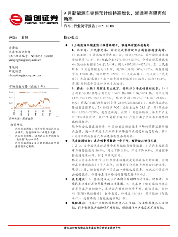 【首创证券】【20211008】9月新能源车销售预计维持高增长,渗透率有望再创新高-10页