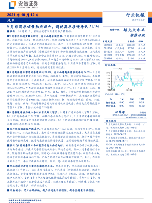 【安信证券】【20211012】9月乘用车销量触底回升,新能源车渗透率达21.1%-3页