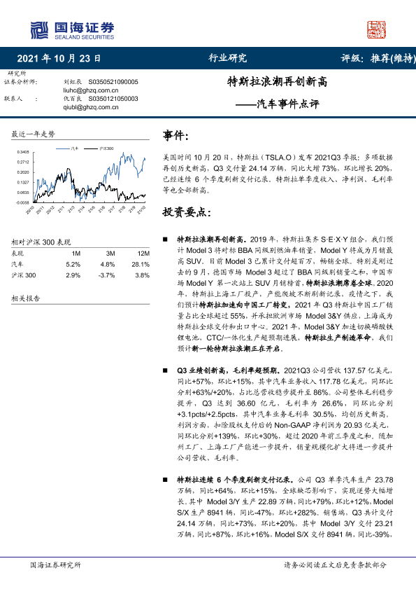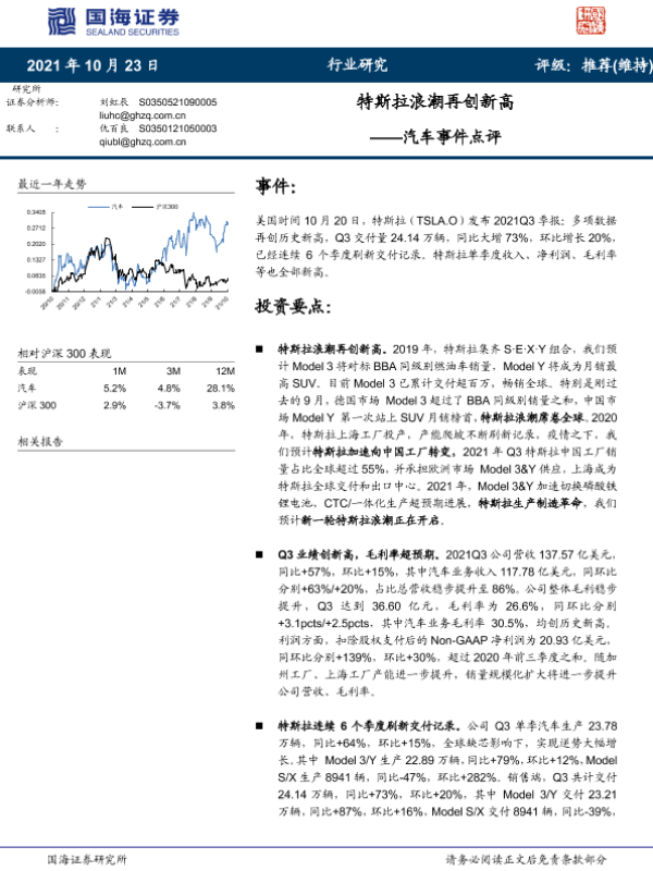 【国海证券】【20211023】特斯拉浪潮再创新高——汽车事件点评-15页