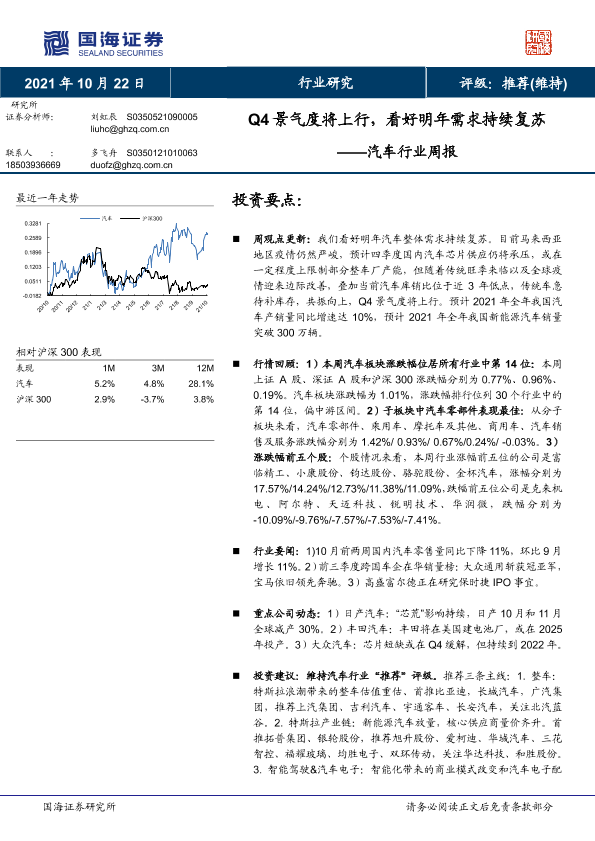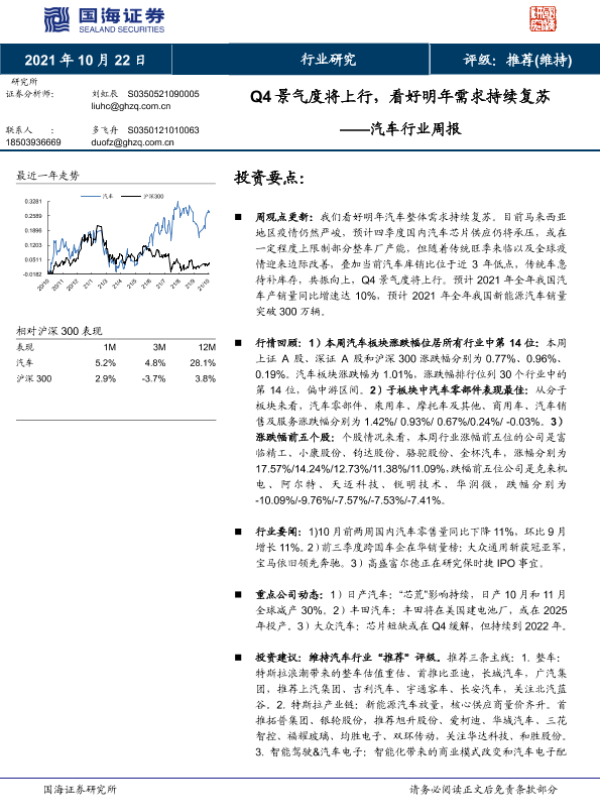 【国海证券】【20211022】Q4景气度将上行,看好明年需求持续复苏——汽车行业周报-14页