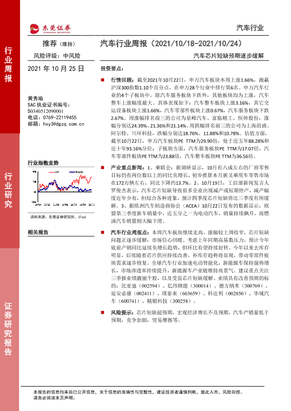 【东莞证券】【20211025】汽车行业周报:汽车芯片短缺预期逐步缓解-11页