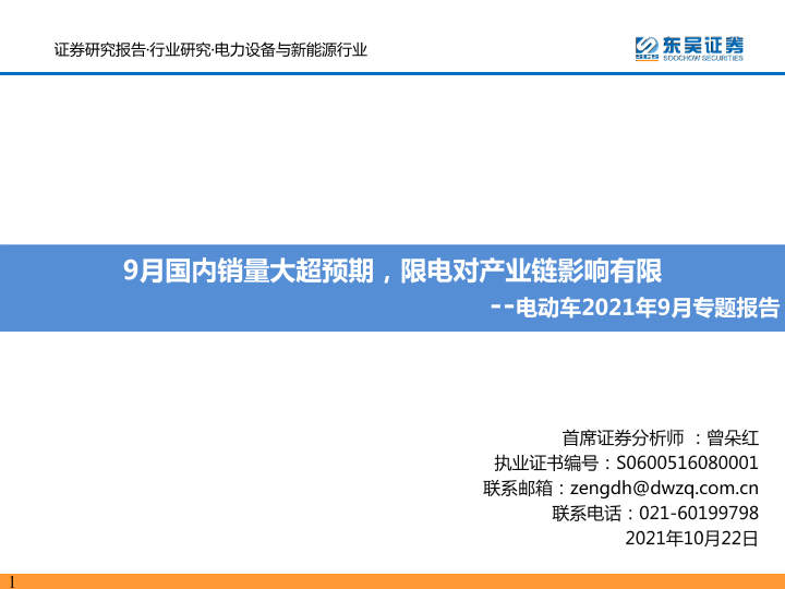 【东吴证券】【20211022】电动车2021年9月专题报告:9月国内销量大超预期,限电对产业链影响有限-53页