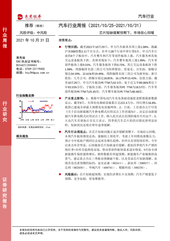【东莞证券】【20211031】汽车行业周报:芯片短缺缓解预期下,市场信心回暖-11页