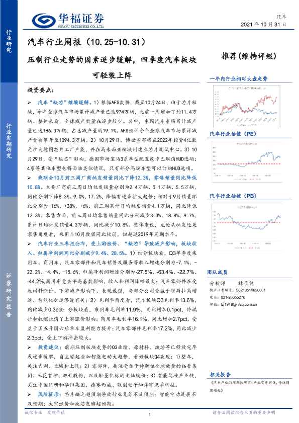 【华福证券】【20211031】20211031-华福证券-汽车行业周报:压制行业走势的因素逐步缓解,四季度汽车板块可轻装上阵-8页