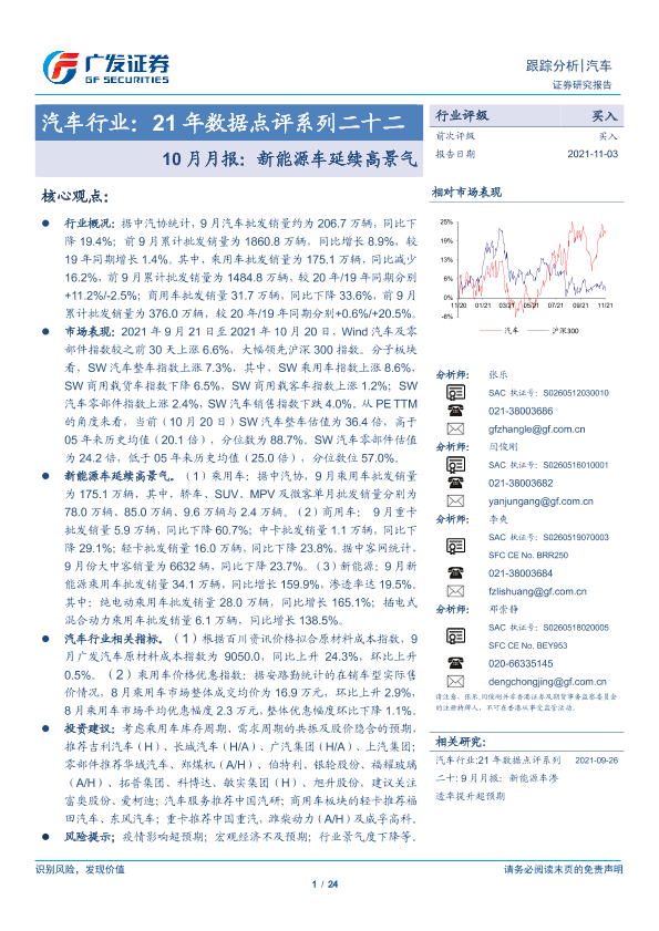 【广发证券】【20211103】21年数据点评系列二十二:10月月报:新能源车延续高景气-24页