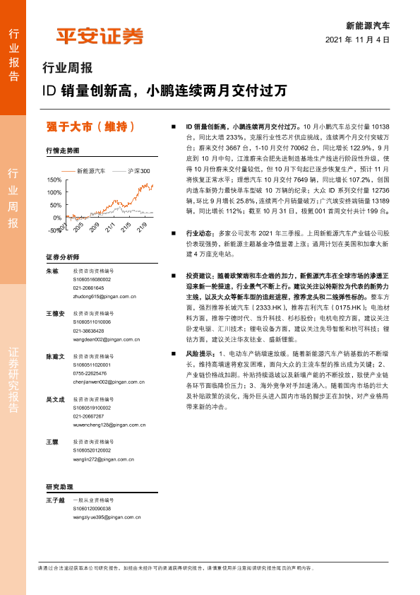 【平安证券】【20211104】20211104-平安证券-新能源汽车行业周报:ID销量创新高,小鹏连续两月交付过万-10页