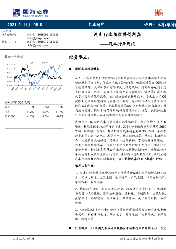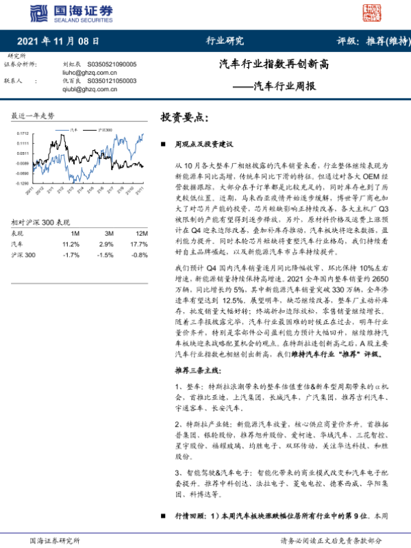 【国海证券】【20211108】汽车行业周报:汽车行业指数再创新高-15页
