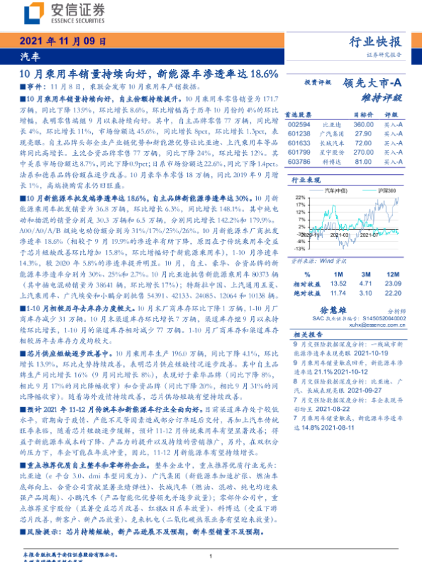 【安信证券】【20211109】10月乘用车销量持续向好,新能源车渗透率达18.6%-3页