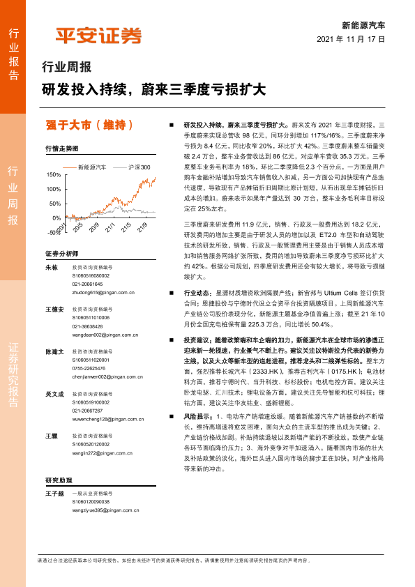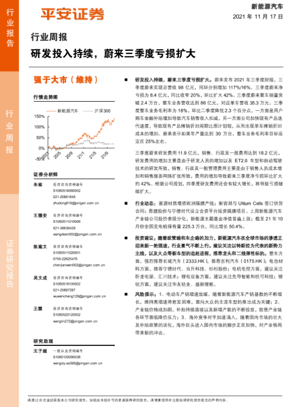 【平安证券】【20211117】新能源汽车行业周报:研发投入持续,蔚来三季度亏损扩大-10页