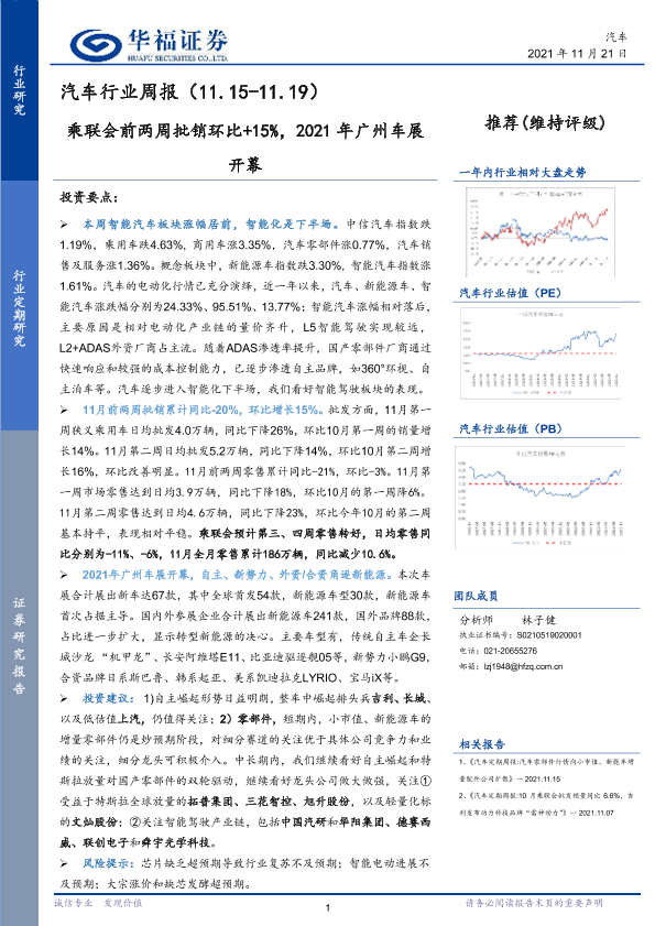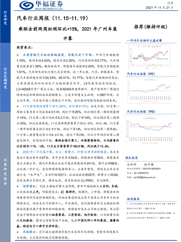 【华福证券】【20211121】20211121-华福证券-汽车行业周报:乘联会前两周批销环比+15%,2021年广州车展开幕-8页