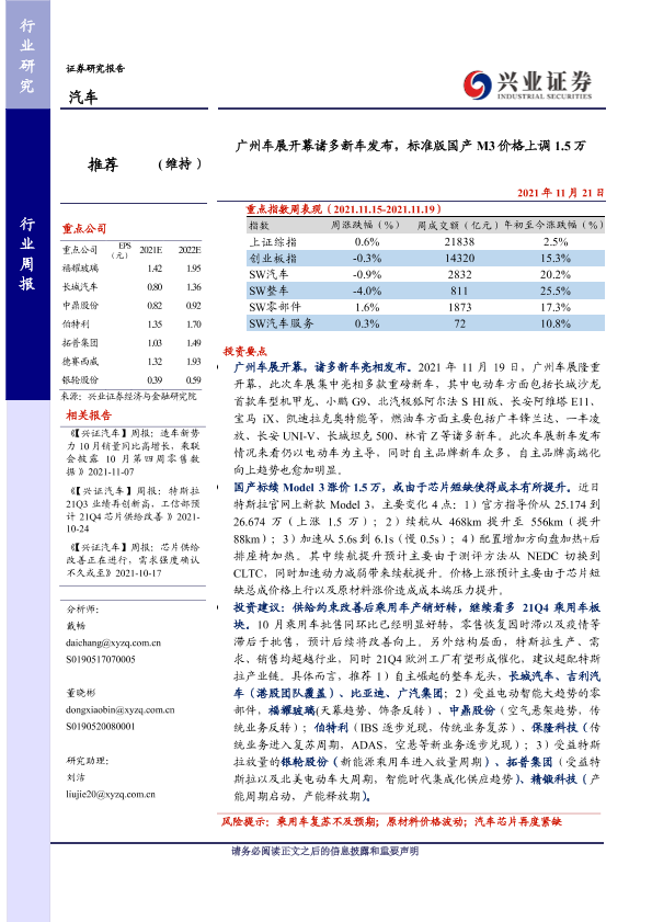 【兴业证券】【20211121】广州车展开幕诸多新车发布,标准版国产M3价格上调1.5万-28页