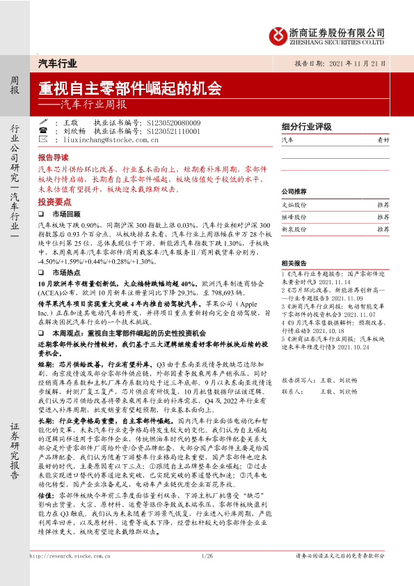 【浙商证券】【20211121】汽车行业周报:重视自主零部件崛起的机会-26页