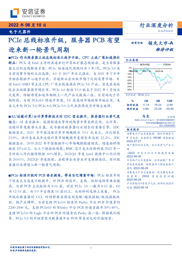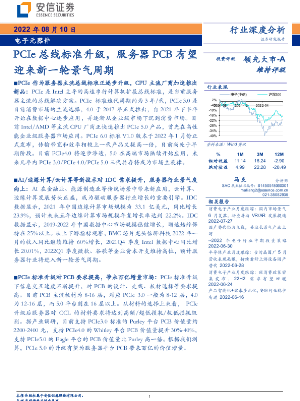 【安信证券】【20220810】电子元器件行业:PCIe总线标准升级,服务器PCB有望迎来新一轮景气周期-28页