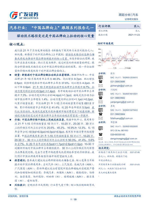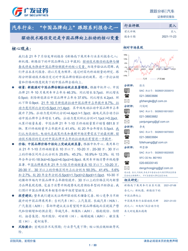 【广发证券】【20211123】汽车行业:“中国品牌向上”跟踪系列报告之一:驱动技术路径变迁是中国品牌向上拉动的核心变量-33页