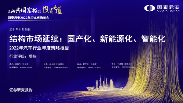 【国泰君安证券】【20211125】2022年汽车行业年度策略报告:结构市场延续:国产化、新能源化、智能化-41页