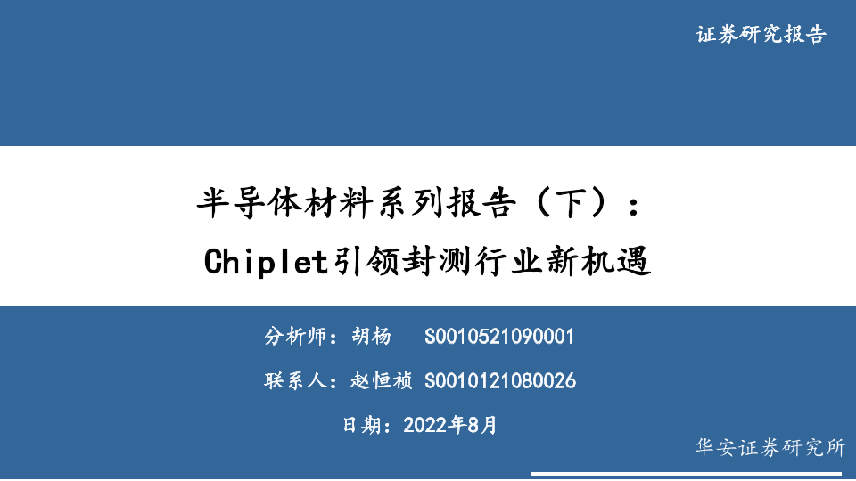 【华安证券】【20220807】电子行业半导体材料系列报告(下):Chiplet引领封测行业新机遇-20页