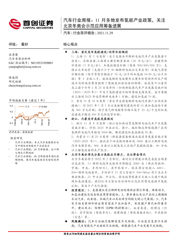 【首创证券】【20211129】20211129-首创证券-汽车行业周报:11月多地发布氢能产业政策,关注北京冬奥会示范应用筹备进展-10页