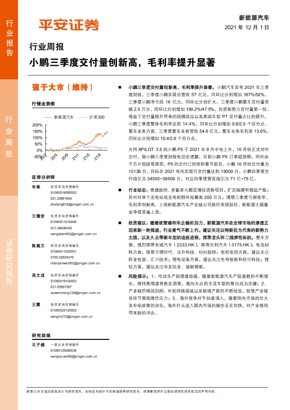【平安证券】【20211201】20211201-平安证券-新能源汽车行业周报:小鹏三季度交付量创新高,毛利率提升显著-10页