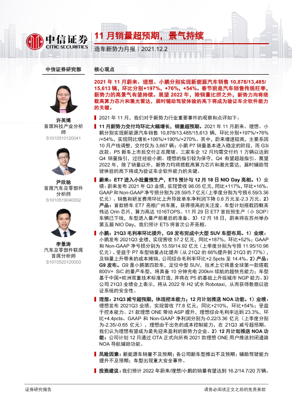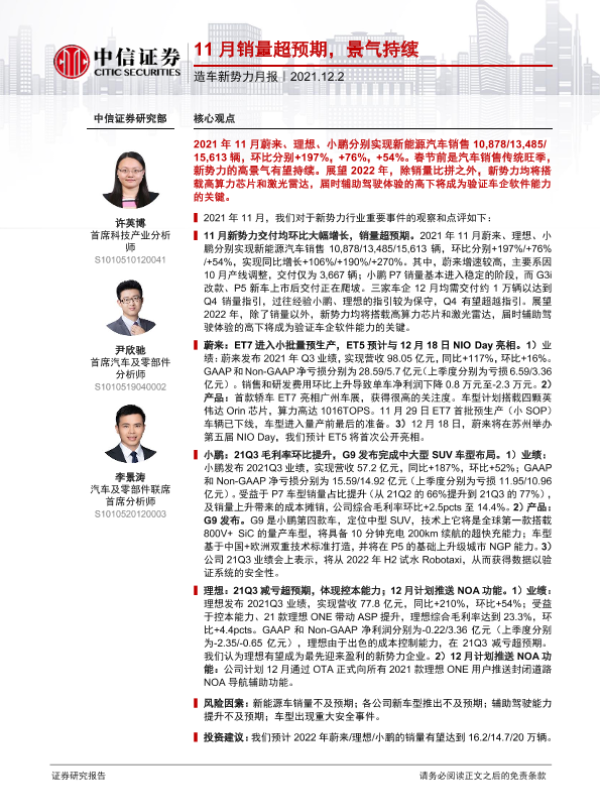【中信证券】【20211202】20211202-中信证券-汽车行业造车新势力月报:11月销量超预期,景气持续-13页