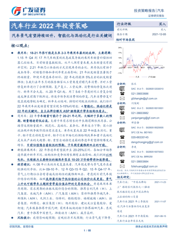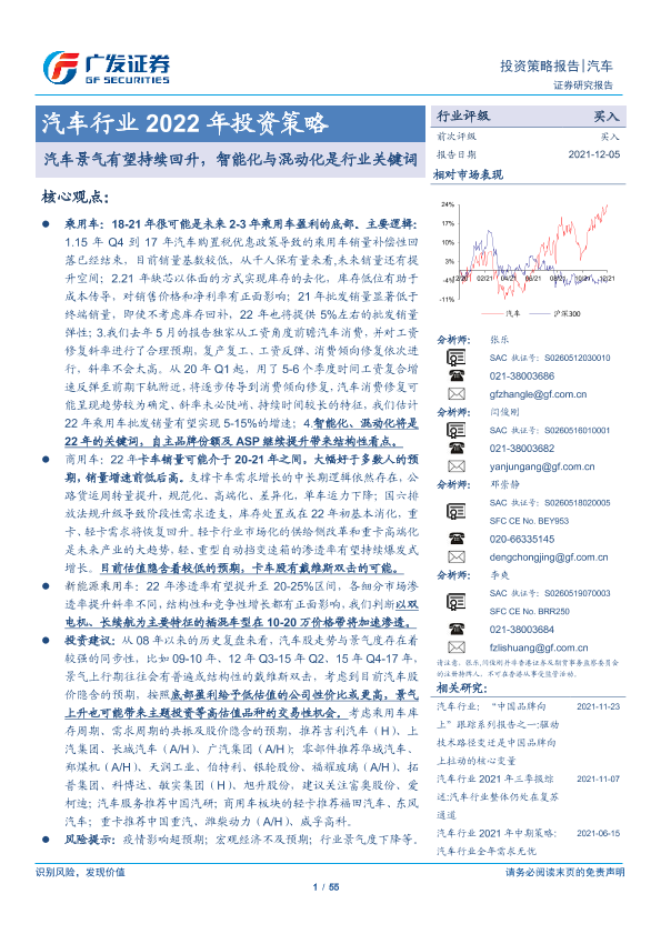 【广发证券】【20211205】汽车行业2022年投资策略:汽车景气有望持续回升,智能化与混动化是行业关键词-55页