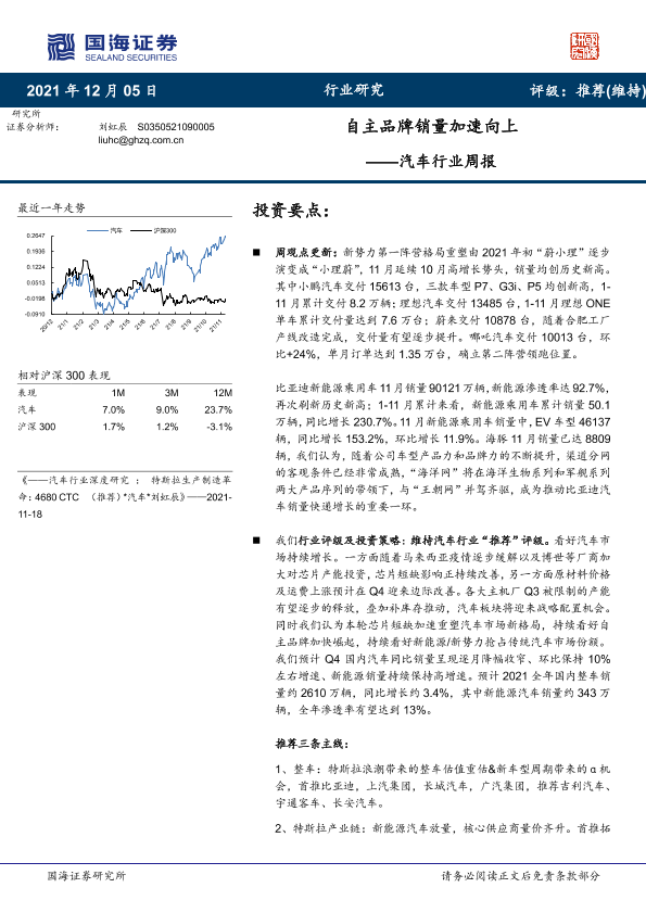 【国海证券】【20211205】20211205-国海证券-汽车行业周报:自主品牌销量加速向上-19页
