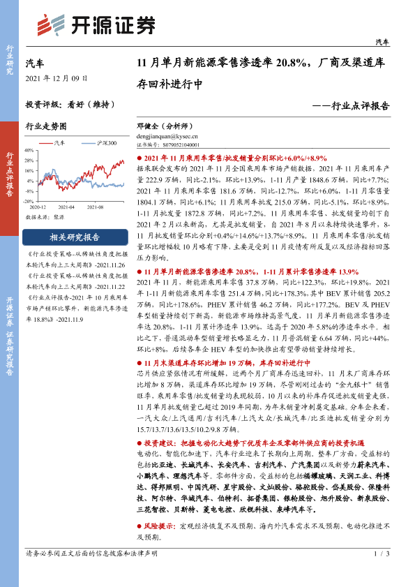 【开源证券】【20211209】11月单月新能源零售渗透率20.8%,厂商及渠道库存回补进行中-3页