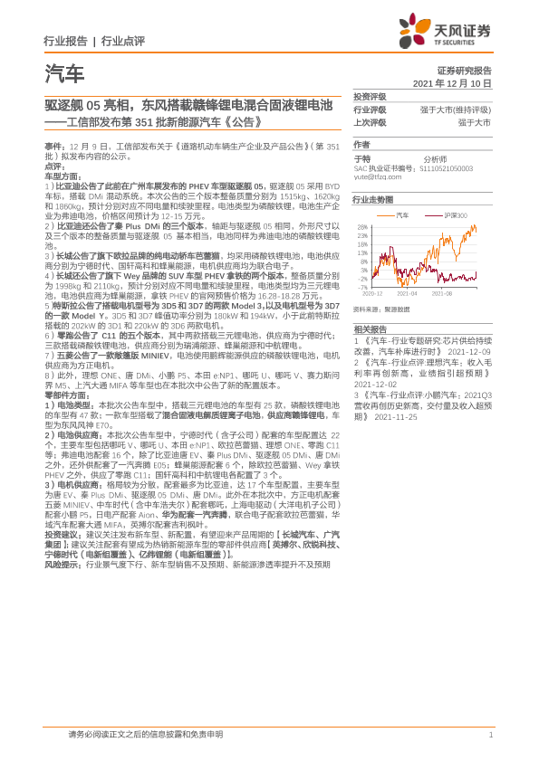 【天风证券】【20211210】工信部发布第351批新能源汽车《公告》:驱逐舰05亮相,东风搭载赣锋锂电混合固液锂电池-7页