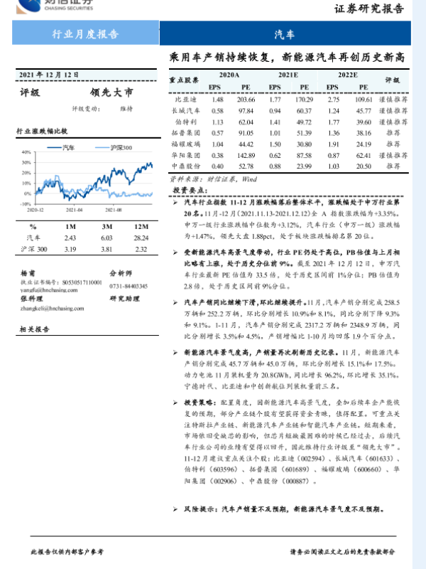 【财信证券】【20211212】20211212-财信证券-汽车行业月度报告:乘用车产销持续恢复,新能源汽车再创历史新高-16页