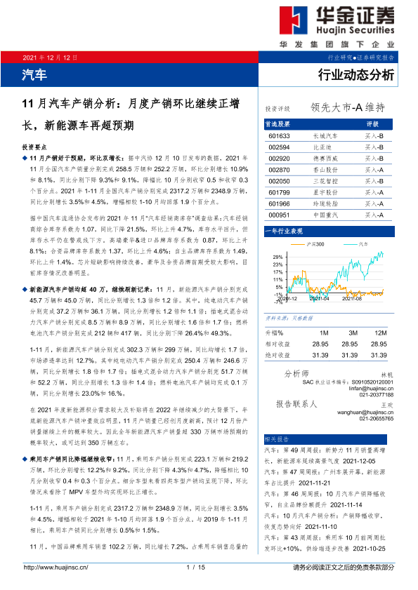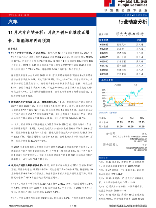 【华金证券】【20211212】11月汽车产销分析:月度产销环比继续正增长,新能源车再超预期-15页