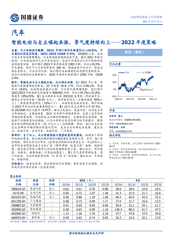 【国盛证券】【20211211】汽车2022年度策略:智能电动与自主崛起共振,景气度持续向上-29页